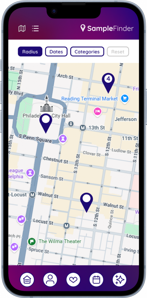 The SampleFinder app will share in-store product tastings, street team locations, grand openings, product launches and more with users. In addition to offering free promotional experiences to consumers, users will be rewarded for their app interaction with entries into monthly contests, exclusive badges, tier rankings, enhanced feature access and more. SampleFinder will utilize AI technology to share relevant promotional events and incentives with users based upon their activity in the app.
